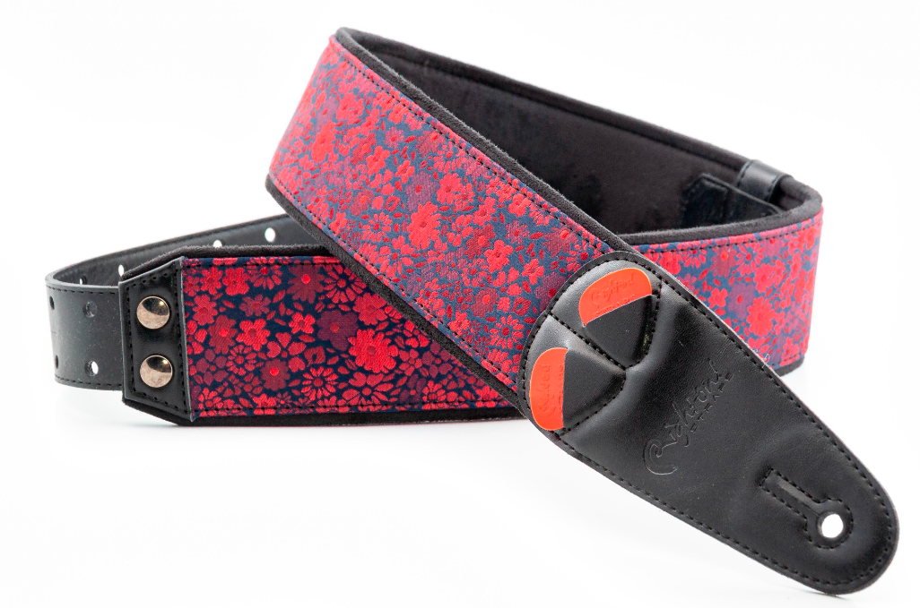 RightOn Mojo Daisy Red to niezwykły pasek gitarowy, który doskonale łączy w sobie styl, wygodę i etyczną produkcję. Jego unikalny design w jasnoczerwonym wzorze kwiatowym wyróżni Cię na każdej scenie, dodając nie tylko funkcjonalności, ale także subtelnej elegancji Twojemu występowi. Ponadto, możesz cieszyć się komfortem dzięki miękkiemu podszyciu, które pozwoli Ci grać przez długie godziny bez odczuwania dyskomfortu. Pasek jest nie tylko estetyczny, ale także wegański, co oznacza, że nie użyto materiałów pochodzenia zwierzęcego, świadomie dbając o środowisko. Solidna konstrukcja sprawia, że pasek jest wytrzymały i niezawodny, doskonale sprawdzając się zarówno podczas koncertów na scenie, jak i intensywnych sesji ćwiczeń w domu. Jest w pełni regulowany, dzięki czemu dostosujesz go do swojego indywidualnego kształtu ciała, a jego uniwersalny rozmiar sprawia, że pasuje do różnych rodzajów gitar. RightOn Mojo Daisy Red to idealny wybór dla miłośników muzyki gitarowej, którzy cenią sobie nie tylko styl, ale także jakość i etyczne podejście do gry.  RightOn Mojo Daisy Red - specyfikacja: