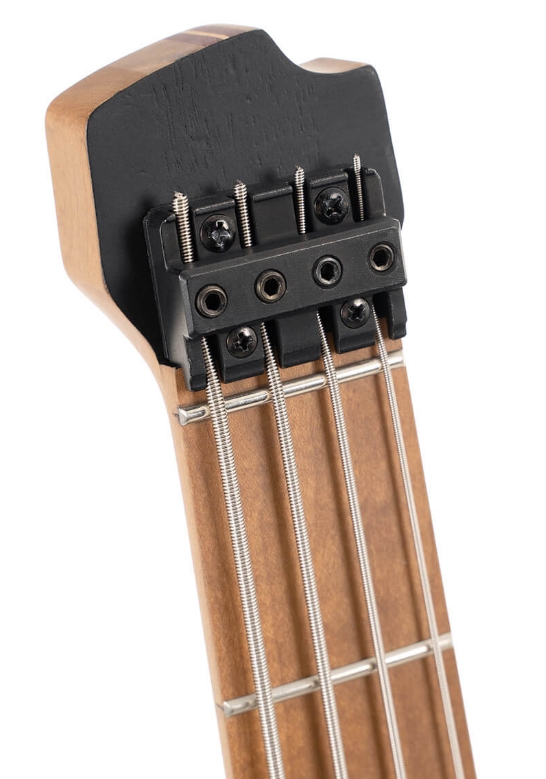 Mostek i klucze: W Cort Space 4 SDG w/BAG zastosowano innowacyjny system mostka headless z rozstawem strun 19 mm, który jest integralną częścią koncepcji instrumentu bez główki. Taki mostek to nie tylko estetyczne rozwiązanie, ale także kluczowy element wpływający na stabilność strojenia oraz efektywność transferu drgań strun do korpusu. Projekt mostka i indywidualne stroiki, licencjonowane przez Steinberger Sound, zostały starannie dobrane i przetestowane, żeby zapewnić maksymalną precyzję ustawienia strun, szybkie strojenie oraz odporność na zmiany temperaturowe i mechaniczne. System headless powoduje, że instrument jest lżejszy i bardziej kompaktowy, co redukuje zmęczenie podczas gry, a jednocześnie pozwala zachować pełną kontrolę nad intonacją i akcją strun. Dzięki specjalnym kluczom headless proces strojenia jest szybki i wygodny, a całość mechaniki została zoptymalizowana pod kątem trwałości i niezawodności.