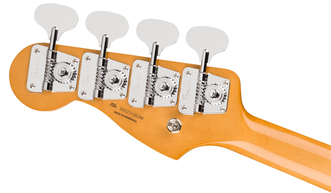 Pozostałe elementy: Instrument Fender Vintera III Late 60s Precision Bass RW FMG uzupełnia wysokiej jakości osprzęt w wykończeniu nikiel/chrom, który doskonale komponuje się z klasycznym designem i kolorem Firemist Gold. Fabrycznie zamontowane struny Fender USA 7250M wykonane ze stali niklowanej o grubości .045-.105 zapewniają odpowiednie napięcie, trwałość oraz zbalansowane brzmienie już od pierwszego użycia. Całość projektu wpisuje się w filozofię serii Vintera III, która koncentruje się na wiernym odwzorowaniu instrumentów z lat 50., 60. i 70., z naciskiem na detale konstrukcyjne i estetyczne. Dbałość o historyczną zgodność widoczna jest zarówno w specyfikacji technicznej, jak i w wyglądzie instrumentu, obejmującym klasyczny kształt główki oraz spójną stylistykę vintage. Fender Vintera III Late 60s Precision Bass RW FMG to instrument, który łączy tradycję z nowoczesną jakością wykonania, oferując kompletny zestaw cech cenionych przez wymagających użytkowników.  Fender Vintera III Late 60s Precision Bass RW FMG - specyfikacja: