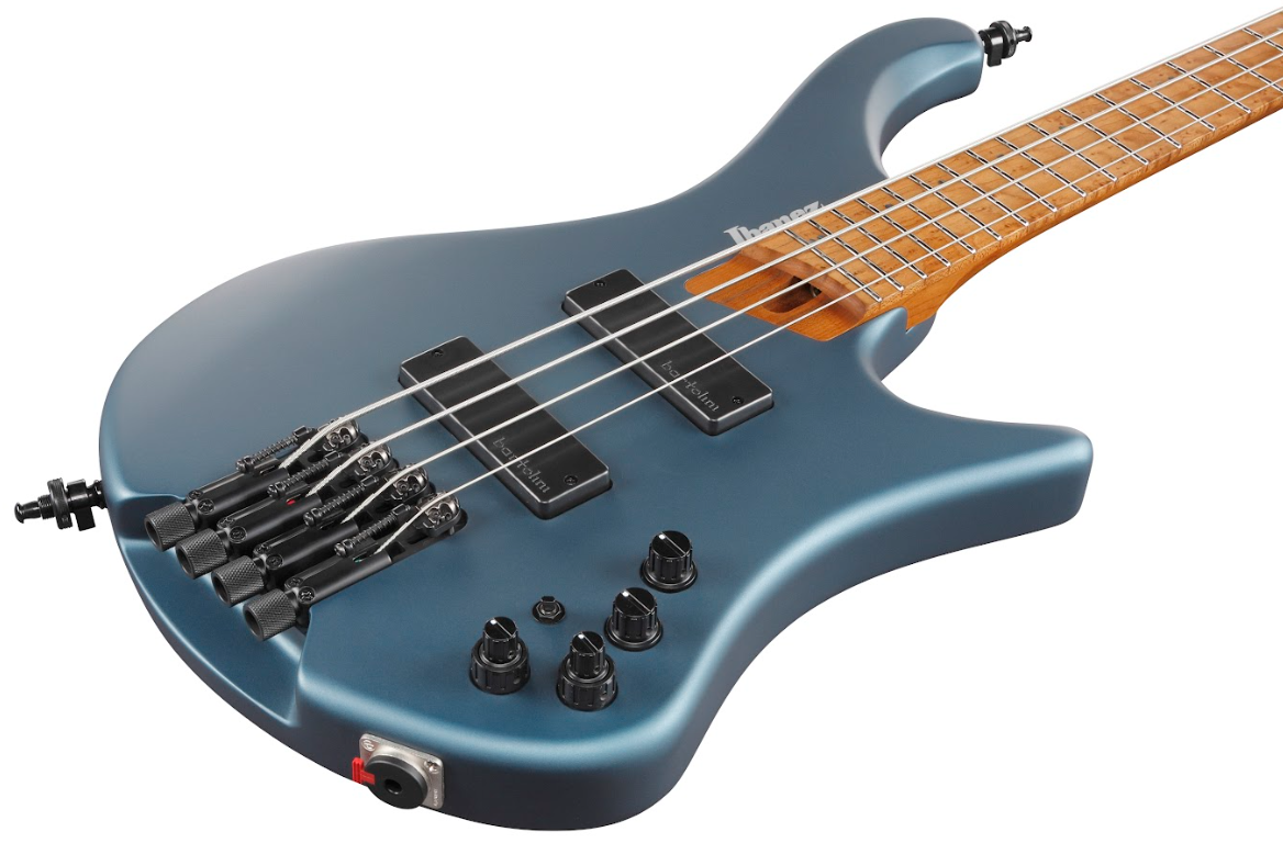 Osprzęt w kolorze black, straplocki Schaller S-Locks oraz Neutrik locking jack to elementy dodatkowe, które podkreślają wysoką jakość wykonania i dbałość o detale. Instrument dostępny w kolorze AOM - Arctic Ocean Matte to estetyczna i nowoczesna propozycja dla wymagających basistów.  Ibanez EHB1000-AOM - specyfikacja: