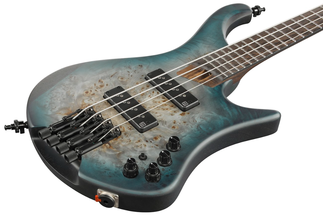 Ibanez EHB1500-CTF to flagowy model z serii EHB Workshop, wyróżniający się konstrukcją headless, ergonomicznym kształtem i wysokiej klasy materiałami. Zbudowany z selekcjonowanego, bardzo lekkiego mahoniu i topu z topoli burl, ten bas oferuje ciepły ton o bogatym rezonansie. Wyjątkowy gryf z 9 kawałków drewna Panga Panga/Walnut, wzmocniony prętem grafitowym, gwarantuje doskonałą precyzję i długi sustain. Customowe pick-upy Nordstrand Big Split oraz 3-pasmowy korektor Vari-Mid pozwalają na kształtowanie różnorodnych brzmień, sprawiając, że EHB1500-CTF to doskonały wybór dla nowoczesnych basistów poszukujących zaawansowanych rozwiązań i wyjątkowego brzmienia.