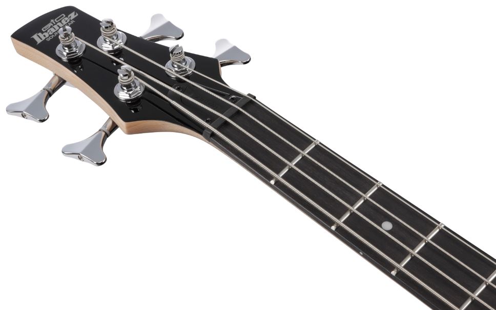 Mostek typu B10 to solidna konstrukcja, która zapewnia pełną regulację intonacji i stabilne strojenie gitary. Dzięki temu muzyk może być pewny, że nawet podczas intensywnej gry dźwięki będą trzymały się na odpowiednich częstotliwościach. Klucze do strun marki Ibanez to gwarancja niezawodności i precyzji strojenia, co jest kluczowe dla każdego muzyka. Struny o rozmiarach .045/.065/.080/.100 zapewniają odpowiednią tensję i brzmienie, które idealnie komponuje się z charakterem gitary. Cały osprzęt wykonany jest w kolorze chromu, co nadaje instrumentowi elegancji i profesjonalizmu.  Ibanez GSR200 BPK - specyfikacja: