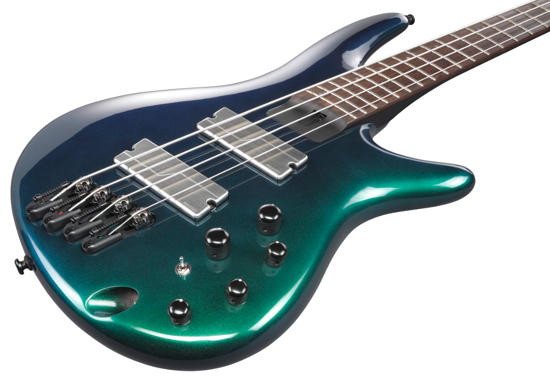 Osprzęt w kolorze czarnym (Black) nadaje instrumentowi elegancki wygląd, podkreślając jego nowoczesny design. Klucze Graph Tech RATIO machine heads (48:1) ułatwiają precyzyjne strojenie, co jest kluczowe podczas występów na żywo. Struny D'Addario EXL170SL (.045/.065/.080/.100) to wysokiej jakości struny, które zapewniają odpowiednią projekcję dźwięku i trwałość. Kolor BCM - Blue Chameleon nadaje instrumentowi niepowtarzalny wygląd, co dodatkowo wyróżnia go na scenie.  Ibanez SRMS720-BCM - specyfikacja: