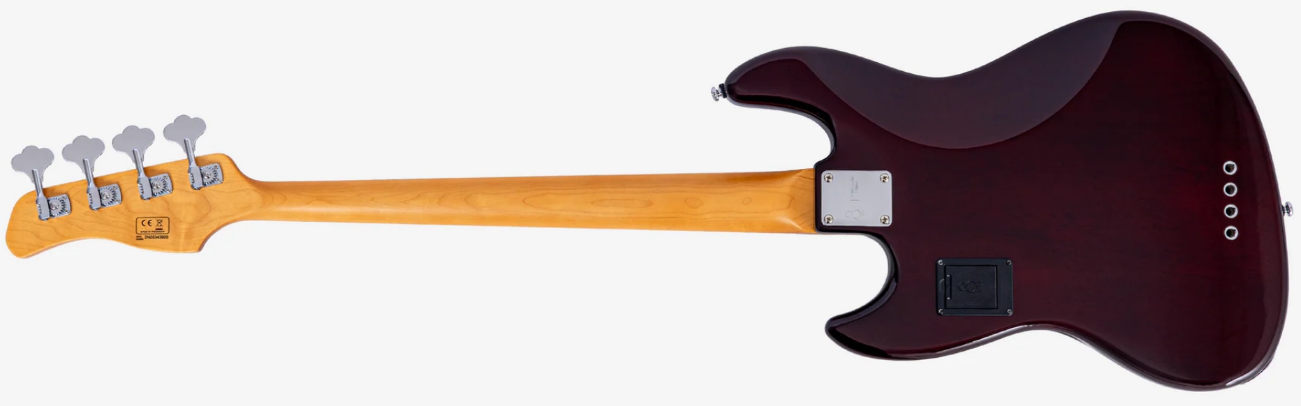 Pozostałe elementy: Marcus Miller V7 Alder-4 New Gen TS wyposażony jest w szereg dodatkowych rozwiązań podnoszących komfort i funkcjonalność instrumentu. Zastosowano siodełko wykonane z kości o szerokości 38 mm, co sprzyja naturalnemu przenoszeniu drgań strun i stabilnej pracy stroju. Boczne znaczniki Luminlay umożliwiają łatwiejszą orientację na gryfie w warunkach ograniczonej widoczności, co zwiększa precyzję poruszania się po podstrunnicy. Całość uzupełnia chromowany osprzęt oraz staranne wykończenie, które nadaje instrumentowi spójny, profesjonalny wygląd. Dodatkowe elementy konstrukcyjne oraz zastosowane materiały składają się na instrument o wysokiej niezawodności, zaprojektowany z myślą o długotrwałej eksploatacji oraz stabilnych parametrach użytkowych. Marcus Miller V7 Alder-4 New Gen TS stanowi nowoczesną interpretację klasycznej konstrukcji, łącząc tradycyjny charakter z udoskonaleniami współczesnej serii New Gen.  Marcus Miller V7 Alder-4 New Gen TS - specyfikacja: