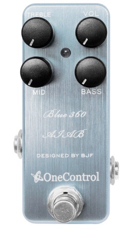 Podczas gdy gitarzyści często mają niesmak do wzmacniaczy tranzystorowych, basiści wręcz z otwartymi rękami witają nowe tranzystorowe konstrukcje. Pomimo tego, że niewiele tranzystorowych wzmacniaczy basowych może pochwalić się mianem kultowych, istnieje pewien legendarny model, z którego nasza kostka czerpie inspirację, mowa tu o urządzeniu Acoustic 360. Słynna 360-tka to wzmacniacz, kóry zasłynął swoją głośnością, innowacyjną konstrukcją, a także pięknym, muzycznym brzmieniem. One Control Blue 360 AIAB to wierne odtworzenie brzmienia 360-tki. Kostka daje nowoczesne brzmienie, znane z ery lat 70-tych. Blue 360 to idealne, basowe brzmienie, przepełnione gęstym i zbitym dołem, mocne uderzenie szczególnie dla basistów grających klasyczny rock, punk, etc. Bocznie ułożony przełącznik działa jako pre-master volume. Natomiast finalną głośność regulujemy pokrętłem Volume. Przy ustawionym bocznym przełączniku na -18 dB, rozkręcenie głównego Volume ustawi poziom na zbliżonym poziomie do trybu bypass. Urządzenie pozwala na tworzenie mocnych brzmień distortion, kiedy rozkręcimy kostkę na max, jednocześnie dając możliwość utrzymania głośności w ryzach kiedy zajdzie potrzeba. Przy ustawieniu 0dB, poziom wyjściowy będzie rósł razem z rozkręcaniem pokrętła Volume.