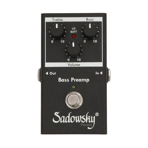 Preamp basowy Sadowsky SBP-2 oferuje basistom tą samą elektronikę, która instalowana jest w każdej gitarze basowej Sadowsky od ponad 30 lat. Preamp ten, to idealne rozwiązanie dla dopalenia sygnału przed wzmacniaczem. Kontrola jest tu zachowana z maksymalną prostotą, mamy Volume, Treble, Bass, przy czym regulacja Treble oraz Bass działa jedynie jako podbicie. SBP-2 to idealne ulepszenie dla vintydżowo brzmiących, czy starych basów, w przypadku kiedy nie chcemy zmieniać elektroniki wewnątrz instrumentu. Najlepsze rezultaty otrzymamy tu z pasywnymi basami, lub układem z aktywnymi pickupami, gdzie można obejść aktywną elektronikę. Działa również dobrze z pickupami kontrabasów.