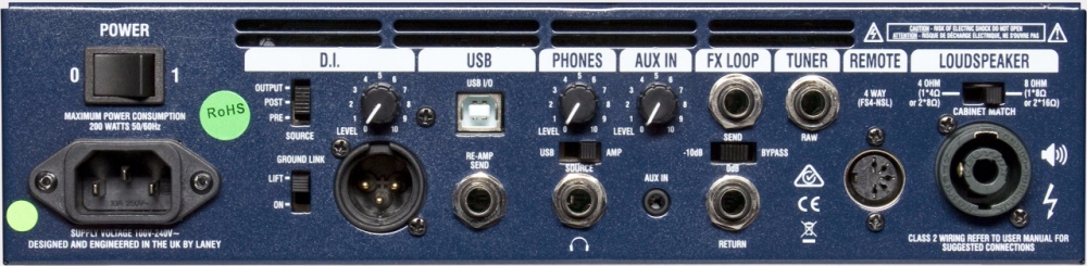 - Wyjścia: XLR DI out, phono out, tuner out, FX Loop, USB, Footswitch, 2 x Speakon speaker connector