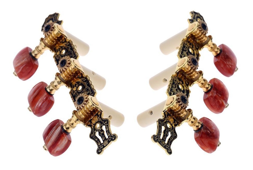 Komplet kluczy do gitary klasycznej. Wykonane z solidnego materiału oferują gwarancję poprawnego działania. Dzięki kluczom, strojenie jest łatwe a naciąg strun niezmienny co skutkuje trwałą intonacją. Idealne jako cześć zamienna do prostych i tanich instrumentów. Świetny stosunek ceny do jakości