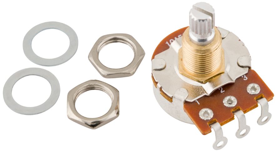EVH Custom Potentiometers Split Shaft wyposażone są w solidną mosiężną tuleję, która zapewnia dłuższą żywotność i stabilność działania. Oś split shaft o średnicy 3/8 cala pozwala na montaż popularnych gałek push-on, a do zestawu dołączone są wszystkie niezbędne elementy montażowe – podkładka oraz dwie sześciokątne nakrętki, umożliwiające regulację wysokości na pickguardzie lub control plate. Tolerancja rezystancji ±10% gwarantuje wysoką precyzję i niezawodność. Jeśli szukasz komponentów, które podniosą funkcjonalność i komfort użytkowania Twojej gitary EVH, potencjometry EVH Custom Split Shaft to doskonały wybór, który sprosta oczekiwaniom nawet najbardziej wymagających muzyków.