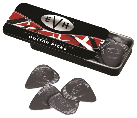 - Zestaw 12 kostek do gitary najwyższej jakości. Zostały wyselekcjonowane z tysięcy egzemplarzy, użytych przez Eddiego Van Halena przez lata kariery. W zestawie również pudełko z logiem EVH i designem słynnego Frankencastera.
