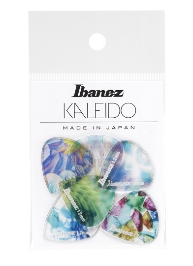 Kostki z serii KALEIDO są wykonane z materiału kopoliestrowego o nazwie „Tritan” („Tritan” jest znakiem towarowym firmy Eastman Chemical Company, Tennessee, USA). Tritan jest przezroczysty jak szkło, a jednocześnie trwały i łatwy w kształtowaniu. Ibanez jest pierwszą firmą, która wykorzystała ten wyjątkowy materiał na kostki do gitary. Kostki KALEIDO mają odważną, kolorową grafikę i łagodniejszy atak dźwiękowy, co pozwala na swobodną kontrolę niuansów i dotyku. Kostki KALEIDO są nieco bardziej miękkie w porównaniu do zwykłych kostek i są dostępne w trzech różnych grubościach: średnio twarda, twarda i bardzo twarda.