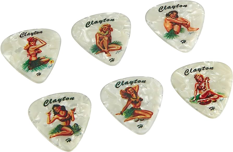 Kostki do gitary marki Steve Clayton od lat przyciągają gitarzystów swoją najwyższą jakością. Seria Hula Hotties została wykonana z celuloidu najwyższej klasy, który pozwala na wydobycie pięknego brzmienia. Piękne wykończenie niesamowicie błyszczy i przypomina muszle. Grafiki umieszczone na kostkach powstały we współpracy z Garrym Palmem, hawajskim artystą.