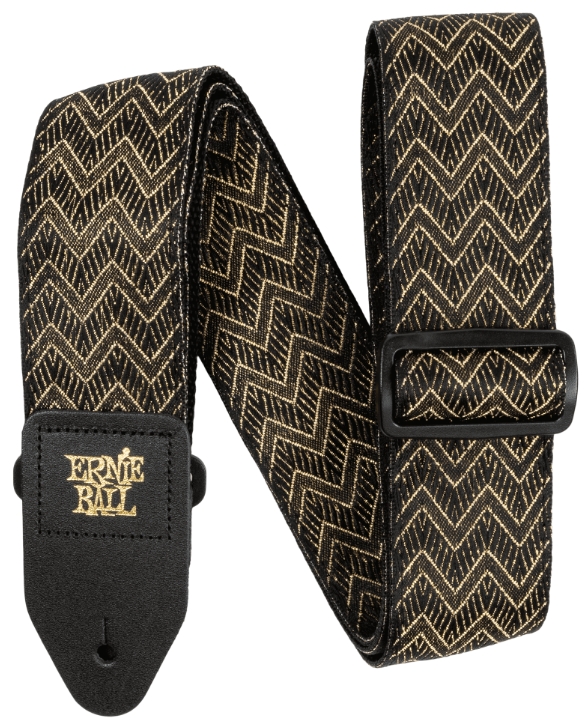 Ernie Ball 5626 Classic Jacquard Guitar Strap/Bass Strap Golden Waves to wysokiej jakości pasek do gitary i gitary basowej, zaprojektowany z myślą o wygodzie i trwałości. Wykonany z wytrzymałej taśmy polipropylenowej zapewnia niezawodność podczas codziennego użytkowania, a haftowane końcówki skórzane zwiększają bezpieczeństwo mocowania instrumentu. Charakterystyczny wzór Golden Waves z serii Classic Jacquard nadaje mu elegancki, wyróżniający się wygląd.