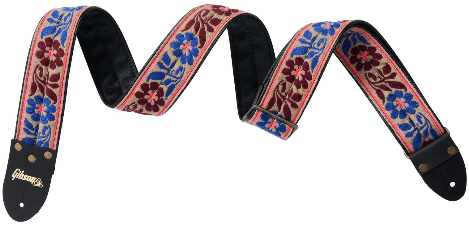 Gibson The Bluegrass to wysokiej jakości pas gitarowy wykonany w USA, stworzony z myślą o muzykach ceniących zarówno komfort, jak i styl. Pas o szerokości 2 cali wykonano z trwałej tkaniny ze splotem Jacquard, a jego tył wykończono czarną wegańską skórą, zapewniającą wygodę noszenia nawet podczas długich sesji muzycznych. Końcówki pasa wykonano z naturalnej skóry, ozdobionej złotym logo Gibson w klasycznym wzorze „Floral”, co podkreśla elegancki wygląd i prestiż marki.