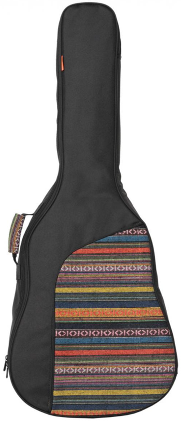 Pokrowiec został wykonany z wysokiej jakości tkaniny OXFORD, która jest wyjątkowo trwała i odporna na uszkodzenia. Dodatkowo, materiał ten zawiera domieszkę bawełny, co nadaje mu przyjemne uczucie dotyku. Aby zapewnić wygodę podczas noszenia, pokrowiec wyposażony jest w solidne i regulowane szelki oraz uchwyt chroniący główkę instrumentu. Dzięki nim możesz łatwo przenosić swoją gitarę akustyczną, nie obawiając się o jej bezpieczeństwo.