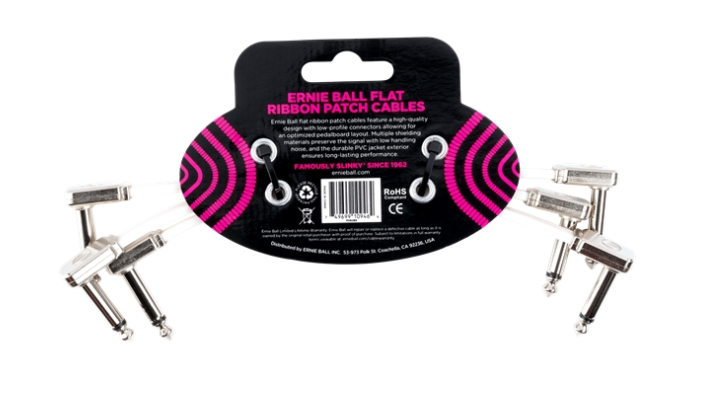Płaskie kable Ernie Ball charakteryzują się wysokiej jakości konstrukcją wykonaną z najlepszych komponentów, które są zbudowane z myślą o trwałości. Płaska konstrukcja kabla i niskoprofilowe złącza pozwalają na zoptymalizowany układ pedalboardu i uporządkowane prowadzenie kabli. Materiał ekranującycy chroni sygnał przy niskim poziomie szumów, a wytrzymała zewnętrzna powłoka z PVC zapewnia długotrwałą wydajność.