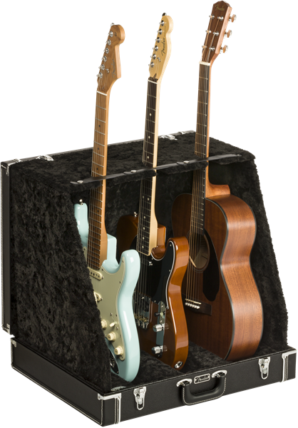 - Stojaki Fender Instrument Stand to świetny sposób na trzymanie i ochronę wielu instrumentów. Ten stojak wygląda jak tradycyjna walizka, ale łatwo zamienia się w gitarowy stojak na gitarze. Wykonana z materiałów odpornych na uderzenia, ta 3-warstwowa, hardshellowa drewniana skrzynia ma owinięty winylem stalowy uchwyt do przenoszenia i stalowe zatrzaski. Miękka, akrylowa podszewka wewnętrzna sprawia, że gitary pozostają nie zadrapane i nieuszkodzone.