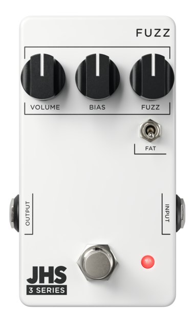 JHS Pedals 3 Series Fuzz to wszechstronny fuzz box, który dobrze współpracuje, kiedy chcesz regulować poziom przesterowania pokrętłęm Volume w gitarze. Ten fuzz to idealna równowaga stylu vintage i nowoczesności z długim sustainem i wyrazstą artykulacją. Pokrętłą pozwalają tworzyć szeroką gamę brzmień, a za pomocą pokrętła Bias możemy uzyskać bardziej bramkowane brzmienie. W przeciwieństwie do wielu efektów typu fuzz, pokrętło fuzzu wykorzystuje 100% zakresu dla wielu różnych brzmień, takich jak przesterowanie, a nawet overdrive'owe brzmienia wzmacniacza Esq. Przełącznik Fat odpowada za wzmocnienie basów, aby uzyskać mocniejszy, tłustszy dźwięk.