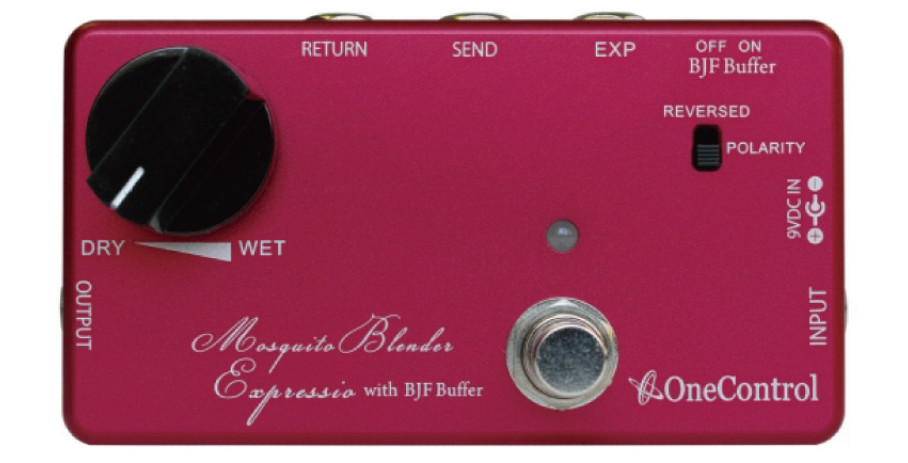 One Control Mosquito Blender Expressio to ulepszona wersja układu 'Mosquite Blender'. Użytkownicy oczekiwali możliwości stopniowego miksowania efektów z pętli FX Loop, lub opcji różnego nasycenia brzmienia na występach live. Możliwość sterowania natężeniem efektów za pomocą pedału ekspresji było tu idealnym rozwiązaniem. Teraz można kierować miksem sygnału wet/dry za pomocą pokrętła, lub bez używania rąk, za pomocą opcjonalnego pedału ekspresji. Nowy Blender posiada także przełącznik Phase, który odwraca fazę w pętli efektów, tak abyśmy mogli uniknąć efektu rozfazowania. Dodatkowo, znajdziemy na pokładzie przełączalny BJF Buffer, który jeszcze bardziej rozwija możliwości tej kostki.