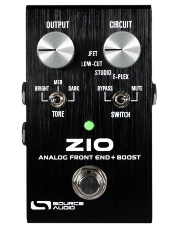 Source Audio ZIO jest w pełni analogowym przedwzmacniaczem/boostem, który zawiera cztery różne układy preamp, każdy z nich z +20dB dodatkowego podbicia na wyjściu. Cel stworzenia ZIO Analog Front End + Boost był prosty, ale ambitny: "Sprawić, aby wszystko brzmiało lepiej!" ZIO to pierwszy w pełni analogowy efekt firmy Source Audio, zaprojektowany we współpracy z Christopherem Venterem, właścicielem i jedynym inżynierem w firmie SHOE Pedals. ZIO jest zwodniczo elastycznym urządzeniem, które może służyć do wielu różnych celów w różnych miejscach Twojego toru sygnałowego. Użyj go na początku łańcucha efektów do kształtowania reszty brzmienia wyjściowego, za kostkami drive, jako ogólnego słodzika brzmienia lub czystego podbicia głośności. Alternatywnie, zastosuj go na końcu pedalboardu do wysterowania długiego kabla lub jako urządzenie uzupełniające, co pozwoli na odtworzenie brzmienia gitary wchodzącej bezpośrednio na wejście wzmacniacza. Możesz również użyć ZIO w pętli efektów wzmacniacza, jeśli chcesz jeszcze mocniej napędzić swój wzmacniacz lub skompensować niedopasowanie poziomów pomiędzy dwoma kanałami. Słowo "ZIO" jest akronimem od Impedancji ("Z" jest elektrycznym symbolem impedancji), Wejścia ("I") i Wyjścia ("O"). Efekt został zaprojektowany tak, aby przejąć sygnał gitary o wysokiej impedancji, osłodzić jego brzmienie za pomocą jednego z czterech układów przedwzmacniacza i wyprowadzić mocny sygnał o niskiej impedancji, który nie zostanie zmieniony przez buforowane suche brzmienie kostek efektowych znajdujących się w dalszej części łańcucha sygnałowego. Wysokiej jakości, bezszumowe komponenty op-amp Burr-Brown, pomagają nadać ZIO ekstremalną klarowność i dynamikę przy zachowaniu idealnego ciepła i charakteru. ZIO posiada cztery odrębne układy przedwzmacniacza. JFET to całkowicie przezroczyste wzmocnienie sygnału z zerowym kolorem lub zniekształceniami. LOW-CUT redukuje dół pasma, zapewniając bardziej zwarty dźwięk i dodatkową przestrzeń. STUDIO czerpie inspirację ze znanej od dawna "sztuczki Pulteca", techniki studyjnej, która dodaje przejrzystości poprzez obcięcie "mulących częstotliwości" i dodanie artykulacji w zakresie tonów średnich. E-PLEX oddaje skupioną i subtelną ziarnistość przedwzmacniaczy stosowanych w zabytkowych urządzeniach typu tape delay. Przełącznik Tone w ZIO oferuje trzy różne poziomy pojemności (lub symulowanej długości kabla) w celu rozjaśnienia lub przyciemnienia brzmienia.