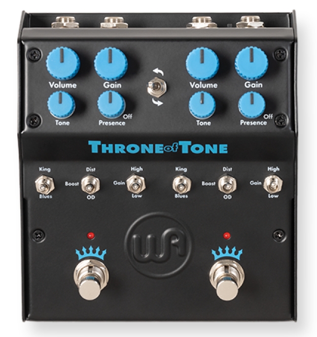 Warm Audio Throne Of Tone to podwójny efekt overdrive, który łączy dwa legendarne pedały klasycznego stylu „amp-in-a-box” w jednym urządzeniu, oferując brzmienia inspirowane wczesnymi nagraniami z lat 60. i boutique-modami współczesnych klasyków. Każda strona pedału posiada osobny zestaw regulacji Gain, Volume, Tone i Presence, a przełączniki pozwalają wybrać tryb drive: Overdrive, Distortion lub Boost, ustawienia low/high-gain oraz głos King lub Blues. Throne Of Tone oferuje globalny tryb zwiększenia napięcia dla większej dynamiki i headroomu, możliwość zmiany kolejności efektów FX Order Swap oraz gniazdo send/return do włączania dodatkowych efektów pomiędzy stronami. Wyposażony w wejście i wyjście jack 6,3 mm, przełącznik nożny do bypassu obu kanałów, diody LED wskazujące aktywność kanałów oraz zasilanie 9 V DC, Throne Of Tone zapewnia pełną kontrolę nad tonem i wszechstronność w każdej konfiguracji. Wymiary 17,1 x 12,7 x 6,7 cm przy wadze 1,1 kg oraz solidna konstrukcja sprawiają, że pedał jest wygodny w użyciu i trwały, a jego podwójne brzmienia nadają się zarówno do gry rytmicznej, riffów, solówek, jak i funkcji boost.