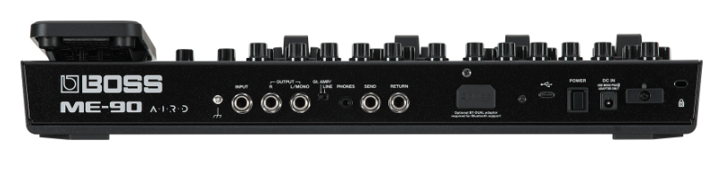 Boss ME-90 współpracuje z BOSS Tone Studio dla macOS i Windows, umożliwiając edycję brzmień i organizację patchy. Obsługuje również opcjonalny adapter Bluetooth Audio MIDI. Jest lżejszy niż poprzednia generacja, solidny i zasilany bateriami AA lub opcjonalnym zasilaczem sieciowym.  Boss ME-90 - cechy:
