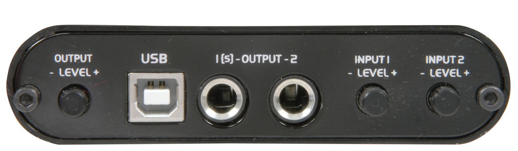 - Na przednim panelu interfejsu zlokalizowano dwa wejścia TRS 6,3 mm [każde posiada przełącznik Line, Instrument oraz +48V], na tylnym odnajdziemy dedykowane do każdego wejścia regulatory wzmocnienia oraz dwa wyjścia [stereo TRS], z których jedno oznaczone symbolem 'S' może zostać użyte jako gniazdo słuchawkowe
