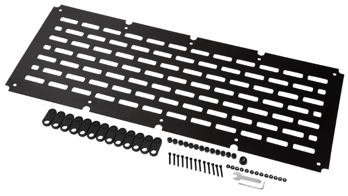 Base Plate zapewnia dodatkową warstwę stabilności dla pedalboardu poprzez torsyjną sztywność i pionowe wsporniki. Dzięki innowacyjnemu designowi slotów, użytkownik może bezpiecznie zamontować zasilacze, efekty, bufory itp. używając systemu QuickMount, zacisków lub taśmy rzepkowej.