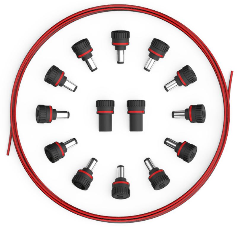 - 12 × wtyk męski (2.1 mm, standardowe złącze DC)