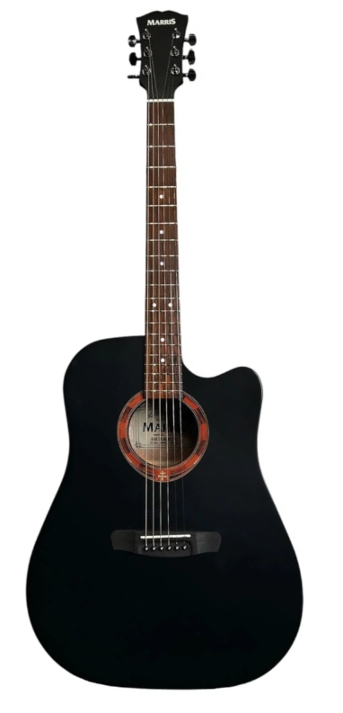 Gryf i podstrunnica: Gryf w gitarze Marris D OPBK został wykonany z wyselekcjonowanego mahoniu, który cechuje się znakomitą wytrzymałością, stabilnością stroju oraz naturalnym wyważeniem, dzięki czemu zapewnia komfortowe i pewne trzymanie instrumentu przez gitarzystę na każdym poziomie zaawansowania. Profile gryfu są starannie dopasowane, co minimalizuje zmęczenie dłoni podczas dłuższych sesji gry, oraz zapewnia precyzyjne prowadzenie palców w czasie gry zarówno w dolnym rejestrze gryfu, jak i na wyższych progach. Podstrunnica z palisandru to rozwiązanie tradycyjne dla gitar akustycznych, które zapewnia gładkie przesuwanie palców i naturalne wyczucie akcji strun oraz subtelne zróżnicowanie tonów, zależnie od techniki gry, co wpływa na muzykalność instrumentu. Instrument dysponuje 20 progami o klasycznym układzie, które zostały precyzyjnie zamontowane, aby gwarantować optymalne intonowanie i stabilność stroju, a także wygodę podczas grania akordów oraz fraz melodycznych.
