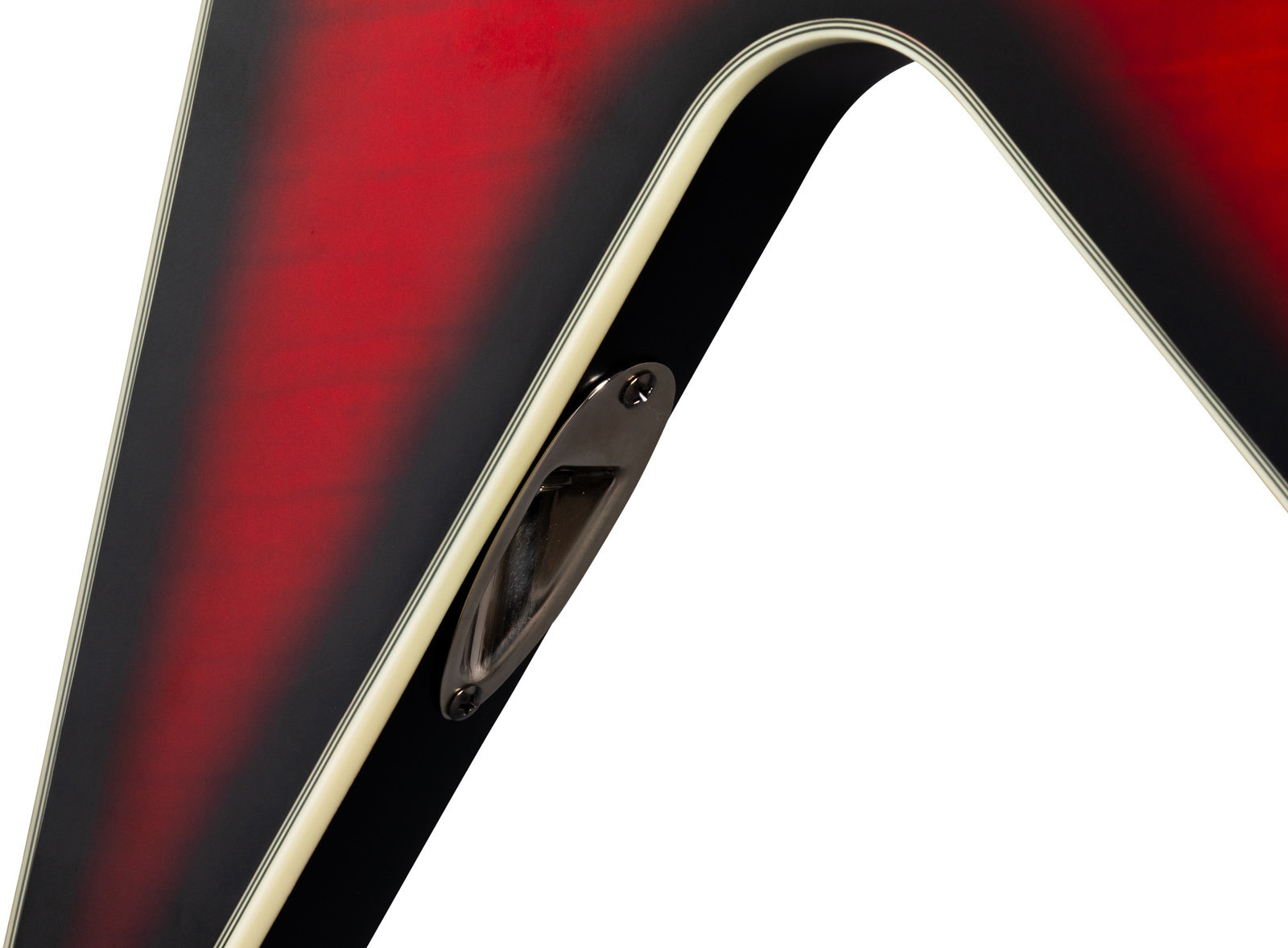 Pozostałe elementy: Epiphone Dave Mustaine Flying V Prophecy to gitara, która dba o każdy szczegół. Wyposażona jest w struny o grubości .010, .013, .017, .026, .036, .046, które zapewniają idealny balans pomiędzy komfortem gry a mocnym brzmieniem. Osprzęt w kolorze brushed black nickel nie tylko doskonale komponuje się z ciemnym wykończeniem korpusu, ale również zapewnia długotrwałą ochronę przed korozją. W zestawie z gitarą znajduje się również customowy futerał hardshell, który zapewnia pełną ochronę instrumentu podczas transportu, co jest niezwykle ważne dla aktywnie koncertujących muzyków.  Epiphone Dave Mustaine Flying V Prophecy - specyfikacja: