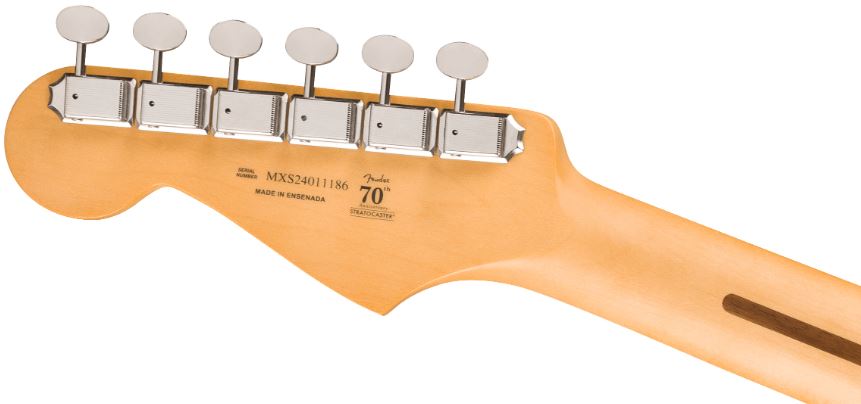 Gitara wyposażona jest w klonowy gryf o smukłej, gładkiej powierzchni, zapewniającej przyjemny kontakt podczas gry. Drewno klonowe, znane z doskonałej trwałości i charakterystycznego brzmienia, wzmacnia średnie i wysokie częstotliwości, co nadaje instrumentowi klarowność i głębię dźwięku. Kształt Modern C gryfu gwarantuje wygodny chwyt i łatwy dostęp do wyższych progów, dzięki czemu jest odpowiedni zarówno dla początkujących, jak i doświadczonych muzyków. Standardowa menzura 25,5 cala zapewnia optymalne odstępy między progami oraz naturalny ton, który doskonale odzwierciedla klasyczny brzmieniowy charakter Stratocastera.