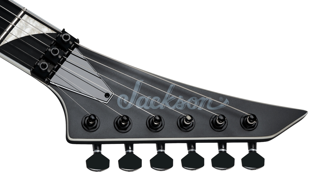 Mostek i klucze: Zastosowany w modelu Jackson Pro Plus Pure Metal Limited Edition Rhoads RR1A Satin Black mostek Floyd Rose 1000 Series Double-Locking Tremolo umożliwia szeroki zakres pracy ramienia przy zachowaniu stabilności stroju. Podwójny system blokowania - zarówno przy mostku, jak i na siodełku - skutecznie eliminuje poślizg strun, co pozwala na intensywne użycie technik takich jak dive bomb czy ekstremalne podciągnięcia bez utraty precyzji stroju. Konstrukcja 6 kluczy w jednej linii na charakterystycznej, spiczastej główce Jackson zapewnia ergonomiczny dostęp oraz estetyczną spójność z agresywną sylwetką korpusu. Klucze Jackson Sealed Die-Cast o zamkniętej konstrukcji cechują się płynną pracą mechanizmu oraz zwiększoną trwałością, wspierając ogólną stabilność stroju i niezawodność instrumentu podczas intensywnej eksploatacji.