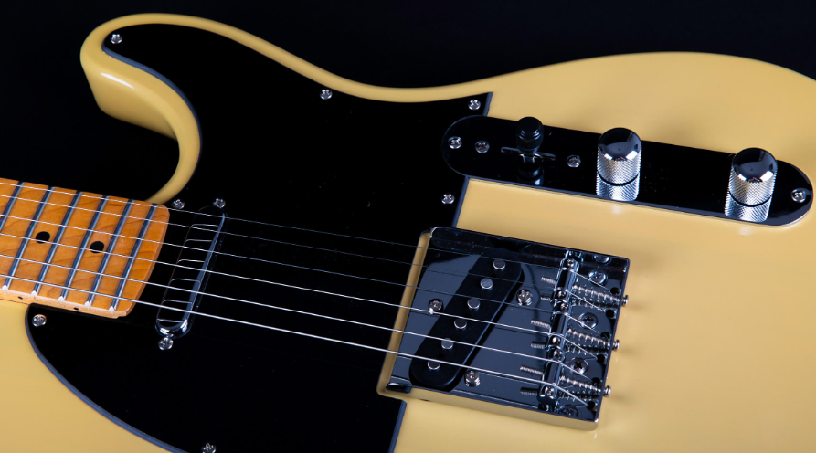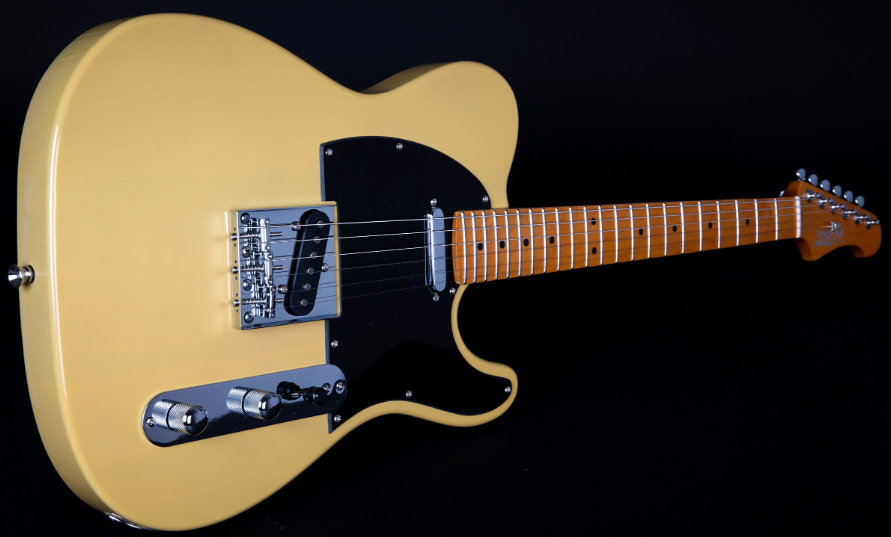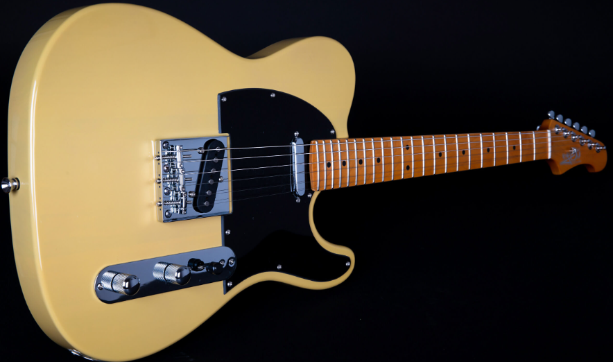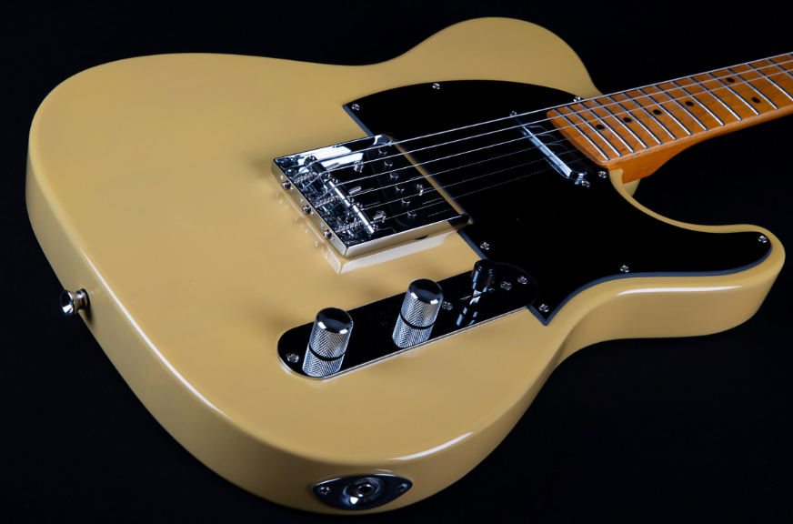 Jet Guitars JT-350 BSC SS to idealne propozycja dla osób poszukujących atrakcyjnej cenowo, ale jednocześnie bardzo porządnej gitary typu Telecaster. Posiada dwa pickupy Single Coil Alnico. Przetworniki są regulowane 3-pozycyjnym przełącznikiem i pokrętłami tonu i głośności. Korpus został wykonany z lipy amerykańskiej, a gryf w kształcie Modern “C” i podstrunnicę z klonu. Drewno tonowe zapewnia zbilansowaną barwę z mocnym środkiem i przyjemną górą. Dodatkowo również wizualnie gitara prezentuje się świetnie z Butterscotch i czarnym pickguardem.