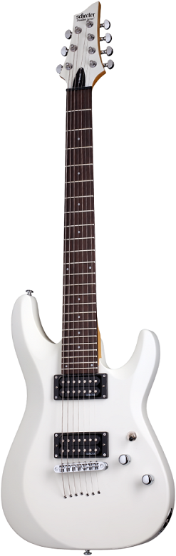 - Doskonała 7 strunowa gitara elektryczna o pięknym, białym design'ie, oraz bardzo dobrych parametrach użytkowych. Instrument wyposażony jest w wygodną, 24-progową podstrunnicę, mocne pickupy Schecter'a, oraz sportowy gryf, umożliwiający granie nawet najtrudniejszych solówek gitarowych