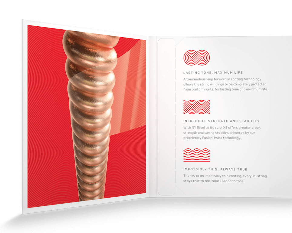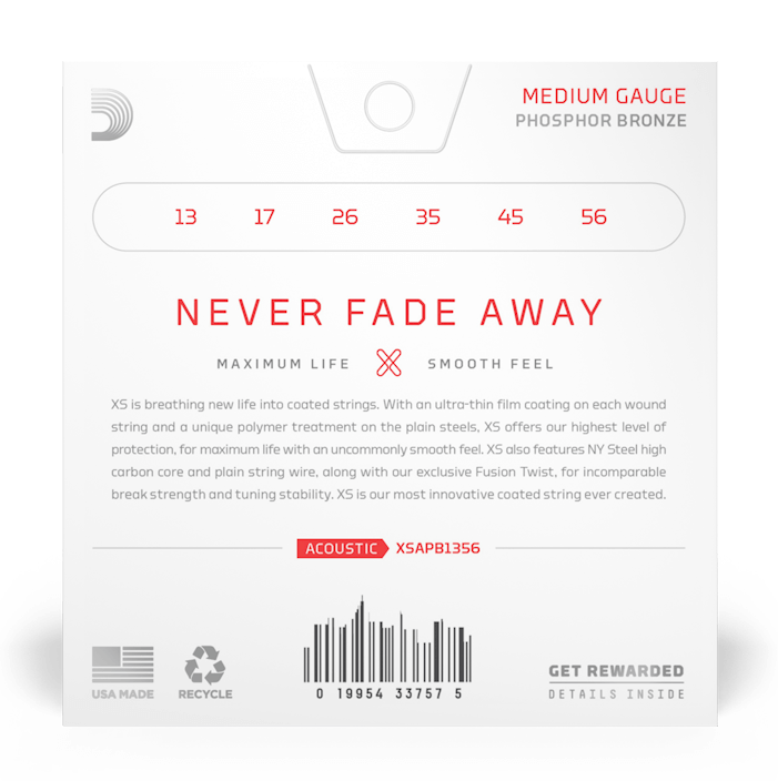 Nowa seria strun XS została stworzona pod hasłem: maximum life+smooth feel. Dzięki zastosowaniu ultra cienkiej powłoki na każdej strunie i unikatowego polimeru, uzyskano struny z wysoką odpornością, długą żywotnością niespotykanym odczuciem gładkości w czasie gry. Najnowsza technologia produkcji strun pozwoliła stworzyć odporny na pękanie produkt o dużej stabilności trzymania stroju. Seria XS Daddario wydaje się kompletną ofertą na to, czego oczekują współcześni gitarzyści. Grubość 13-56 to najgrubszy set w ofercie z mocnym i donośnym dźwiękiem oraz potężnym basem.