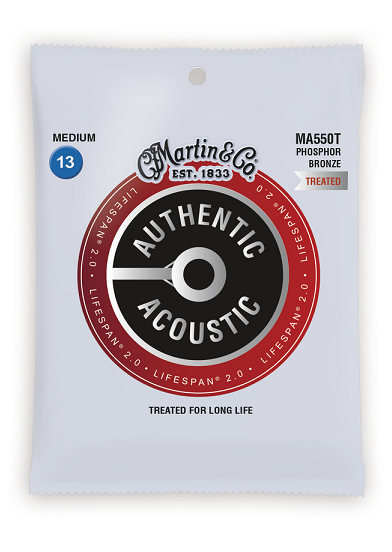 Struny następnej generacji Lifespan 2.0 są zaprojektowane w oparciu o nową, opatentowaną technologię dostępną tylko od firmy Martin. Ta technologia została opracowana w celu ochrony drutu rdzeniowego i drutu owijającego, aby zapobiec korozji bez pogarszania jakości dźwięku. Struny Authentic Acoustic Lifespan 2.0 wyglądają lepiej, brzmią lepiej i są lepsze w odczuciu pod palcami, zapewniając płynną grę. Nienaganne standardy brzmienia gitary akustycznej to główny cel, dla którego firma Martn tworzy stuny w swoim precyzyjnym procesie produkcji.