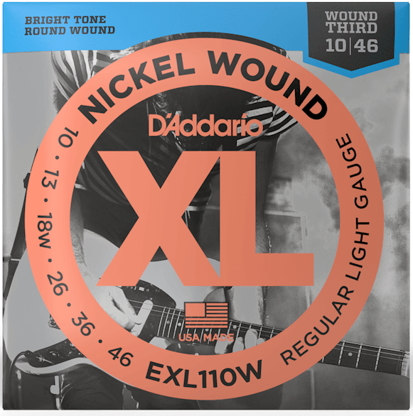 - Struny D'addario EXL110 mają owijkę ze stalowego, niklowanego drutu i są znane z ich wyrazistego, jasnego brzmienia oraz znakomitej intonacji