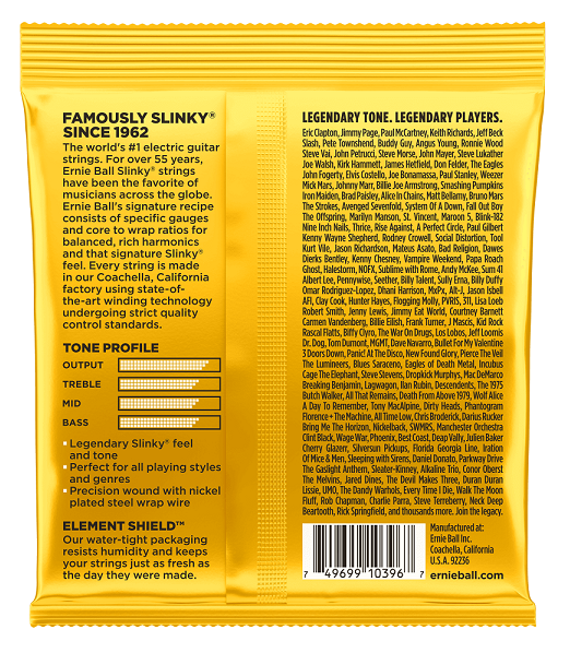 Struny Ernie Ball to jedne z najpopularniejszych wyborów muzyków na całym świecie. Od lat cenione są za genialne brzmienie i super czucie. W szerokiej ofercie znajdują się różne grubości, a także serie serie, wyróżniające się materiałem i chcarakterystycznymi cechami. Marce Ernie Ball zufało wielu znakomitych muzyków takich jak: Eric Clapton, Jimi Page, Jeff Beck i inni.