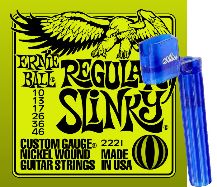 • Struny do gitary elektrycznej Ernie Ball wykonane z niklowanego drutu stalowego owiniętego na ocynkowany drut stalowy w kształcie sześcianu. Struny są wykonane ze specjalnie hartowanej, wysokowęglowej stali powlekanej cyną, co zapewnia dobrze zbalansowane brzmienie gitary. Ernie Ball EB2221 to struny które od niepamiętnych czasów konkurują o dominację z Daddario EXL110, i są to w obu przypadkach najczęściej wybierane struny z lekkim wskazaniem na struny Ernie Ball