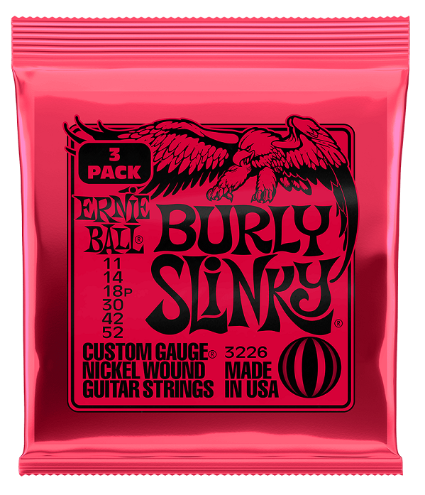 Inne oznaczenia produktu:BURLY SLINKY NICKEL WOUND ELECTRIC GUITAR STRINGS 3 PACK - 11-52 GAUGE, Ernie Ball EB3226, EAN 749699132264
