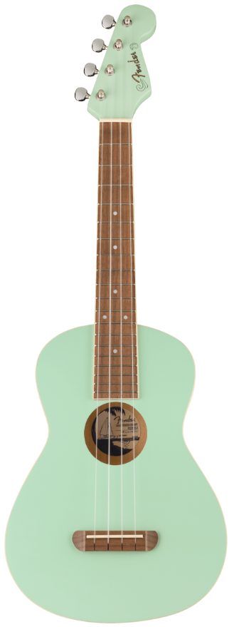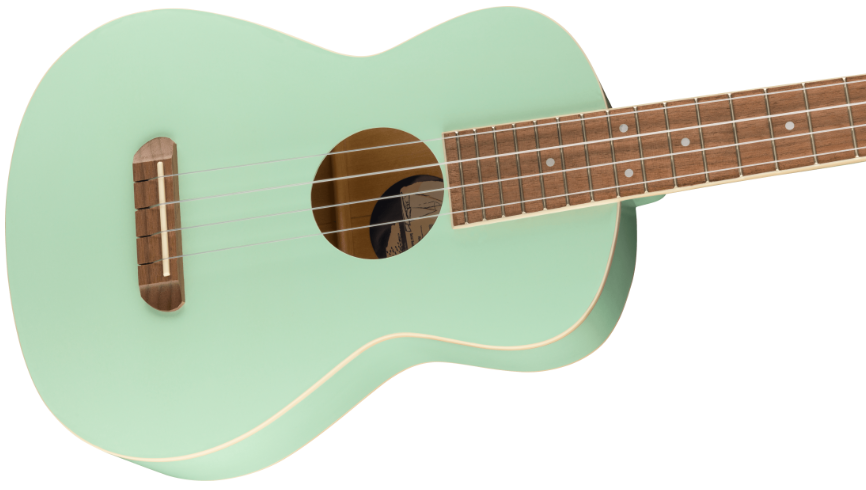 Ukulele tenorowe Fender Avalon zostało zainspirowane społecznością wyspy Catalina. Dzięki swoim większym rozmiarom zapewnia głębszy niż w mniejszym ukulele rejestr tonalny, jednocześnie pozostając niesamowicie wygodnym i mobilnym instrumentem. Cały korpus został wykonany z lipy, gryf w kształcie “C” z Nato, natomiast podstrunnica zrobiona jest z orzecha. Ukulele dostępne jest w wielu wariantach kolorystycznych, wersja SFG to zielone malowanie Surf Green.  Fender Avalon Tenor Ukulele SFG - cechy: