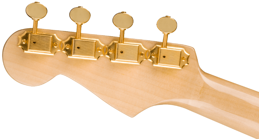 Pochylając się w stronę kultowych kształtów gitary Fendera, ukulele z serii Fullerton są niczym ich elektryczne odpowiedniki. Stratocaster Fullerton odbiega od tradycyjnej konstrukcji ukulele i estetyki, pozostając wierny historii Fendera. Ukulele posiada charakterystyczną Maskownicę Stratocaster, kształt pudła i główkę z kluczami w jednej linii. Nawet opcje kolorów wykończenia to nic innego jak kwintesencja Fendera. Fullerton Stratocaster to idealny wybór dla gracza ukulele, który chce wprowadzić rock and rolla w każdy występ! Tutaj klasyczny czerwony kolor Fiesta Red świetnie kontrastujący z białą płytką.  Fender Fullerton Strat Uke FRD - Specyfikacja: