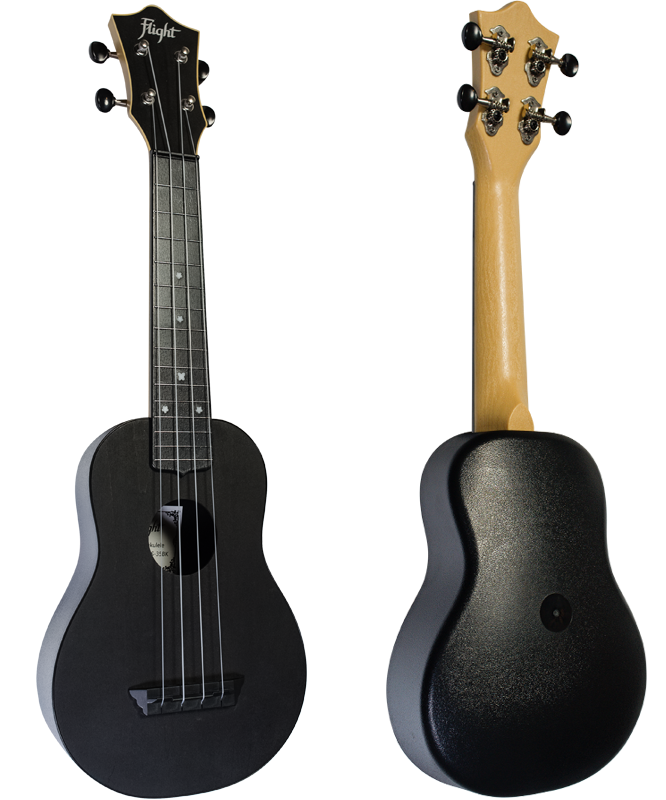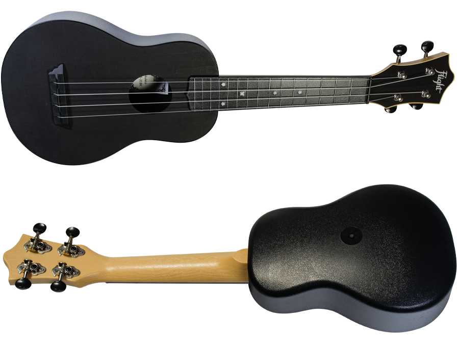 - Flight TUS35 Black Travel Soprano Ukulele pomimo ze wykonane jest z plastiku oferuje świetne brzmienie! Ten model obala mit, że plastikowe ukulele zastępujące prawdziwe drewno jest tanie i kiepskie. Jest odporne na wilgoć, zmiany temperatury i jest trwałe- idealny wybór jako wakacyjne ukulele czy instrument do podróży.