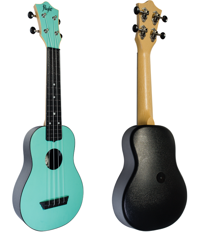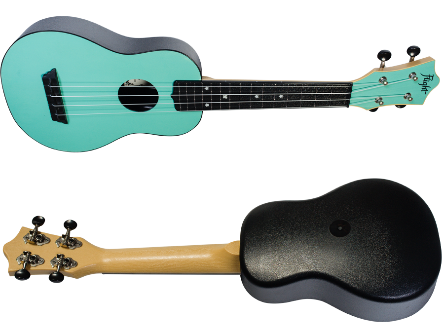 - Flight TUS35 Black Travel Soprano Ukulele pomimo ze wykonane jest z plastiku oferuje świetne brzmienie! Ten model obala mit, że plastikowe ukulele zastępujące prawdziwe drewno jest tanie i kiepskie. Jest odporne na wilgoć, zmiany temperatury i jest trwałe- idealny wybór jako wakacyjne ukulele czy instrument do podróży.