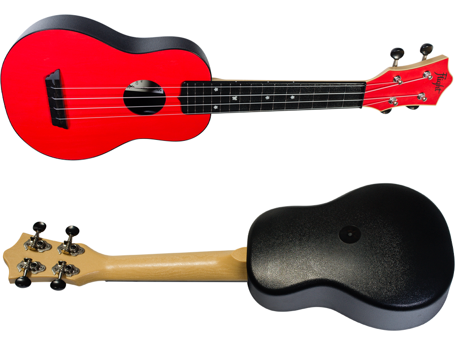 - Flight TUS35 Black Travel Soprano Ukulele pomimo ze wykonane jest z plastiku oferuje świetne brzmienie! Ten model obala mit, że plastikowe ukulele zastępujące prawdziwe drewno jest tanie i kiepskie. Jest odporne na wilgoć, zmiany temperatury i jest trwałe- idealny wybór jako wakacyjne ukulele czy instrument do podróży.