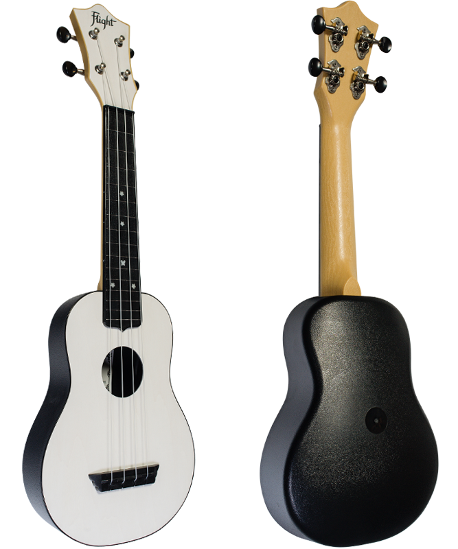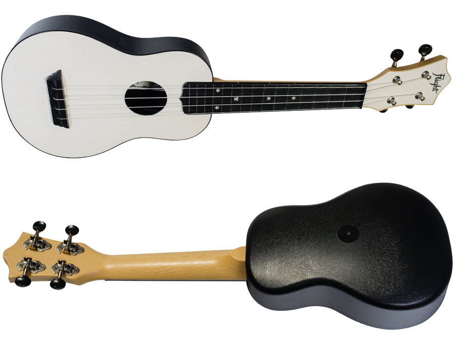 - Flight TUS35 Black Travel Soprano Ukulele pomimo ze wykonane jest z plastiku oferuje świetne brzmienie! Ten model obala mit, że plastikowe ukulele zastępujące prawdziwe drewno jest tanie i kiepskie. Jest odporne na wilgoć, zmiany temperatury i jest trwałe- idealny wybór jako wakacyjne ukulele czy instrument do podróży.