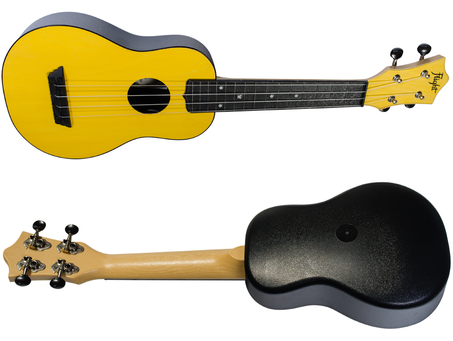 - Flight TUS35 Black Travel Soprano Ukulele pomimo ze wykonane jest z plastiku oferuje świetne brzmienie! Ten model obala mit, że plastikowe ukulele zastępujące prawdziwe drewno jest tanie i kiepskie. Jest odporne na wilgoć, zmiany temperatury i jest trwałe- idealny wybór jako wakacyjne ukulele czy instrument do podróży.