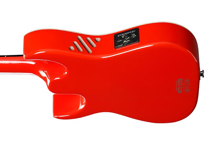 Boczny otwór rezonansowy.  Gryf z okume zapewnia komfort gry.
