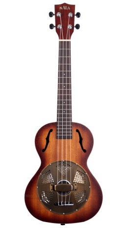 - Ukulele marki Kala to instrument profesjonalny i wyróżniający się na rynku ze względu na wersję rezofoniczną. Pod mosiężną pokrywą, wewnątrz korpusu znajduje się lekka aluminiowa membrana, która stanowi dodatkowy rezonator akustyczny i zwiększa natężenie wydobywanego dźwięku. Takie rozwiązanie przyczynia się oczywiście do zwiększenia głośności instrumentu oraz poszerzenia jego możliwości, jak przykładowo gra solowa.